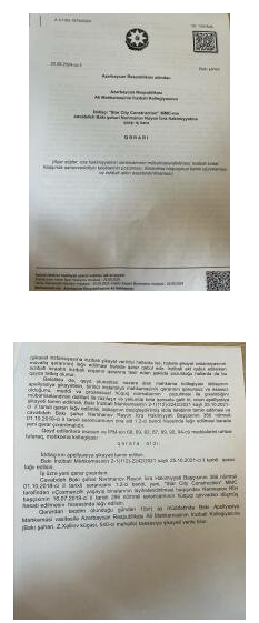 Bakı şəhərində çoxmərtəbəli binaların inşası ilə məşğul olan “Star City Construction” MMC Nərimanov Rayon İcra Hakimiyyətini məhkəmə qərarlarını icra etməməkdə ittiham edir.